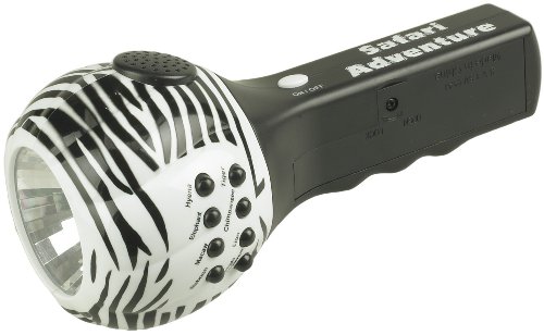 Kids of all ages will delight in these flashlights that will light their way with fun, built-in sound and light effects. Adventure sound effects include: Chimpanzee, Elephant, Hyena, Lion, Macaw, Baboon, Tiger, and Jungle Ambience. Light flashing effects are activated for each of the 8 individual sounds. Also works as a normal flashlight.Available at Amazon