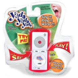 Say it! Play it! Warp it! This fun voice recorder can morph your voice with the warp dial. Record and play your voice, music or just about anything. Warp control makes any sound hilarious. Press the "say" button and Yada into the microphone. Hit "play" to listen to your Yada recording. Use the warp dial to morph your Yada pitch -- you can hear "high 'n fast" or "low 'n slow." Requires 3 "1.5V" LR1130 batteries, included. Measures 3.75" x 1.75" x .75". Colors may vary.Available at Amazon
